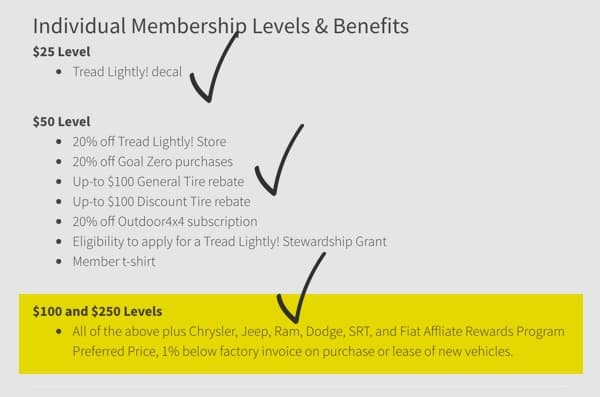 fca tread lightly signup fyi summary discount program jeepgladiatorforum